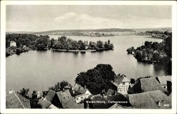 Ak Waren an der Müritz, Blick über den Tiefwarensee, Wohnhäuser