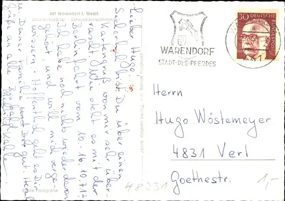 Ak Warendorf im Münsterland, Josefs-Hospital, Schwesternwohnheim