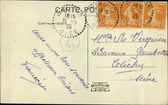 Zustand, siehe Scan, gelaufen, 1925 - ca 14 cm X 9 cm