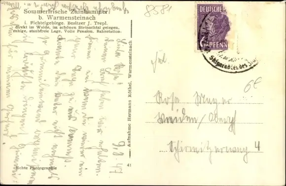 Zustand, siehe Scan, gelaufen- Inh. J. Trepl - ca 14 cm X 9 cm