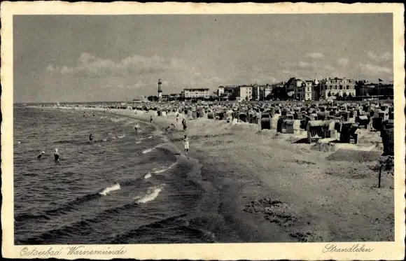 Ak Warnemünde Rostock, Strandleben, Leuchtturm