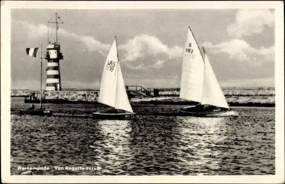 Ak Warnemünde Rostock in Mecklenburg, Segelboote von Regatta zurück