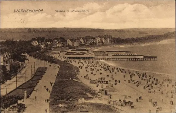 Ak Warnemünde Rostock in Mecklenburg, Strand und Promenade