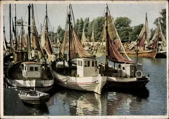 Ansichtskarte, Postkarte, Hafen, Schiffe, Boote, Dampfer, Boot