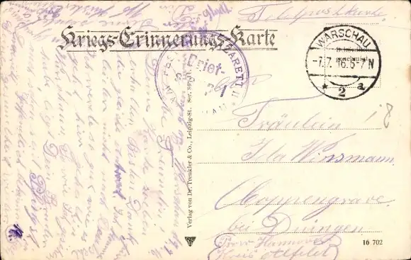 Zustand, siehe Scan, gelaufen, 1916 - ca 9 cm X 14 cm