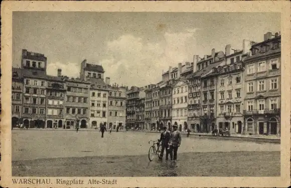Ak Warszawa Warschau Polen, Ringplatz, Altstadt, Fahrrad, Häuser