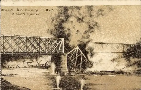 Ak Warszawa Warschau Polen, Zerstörte Brücke