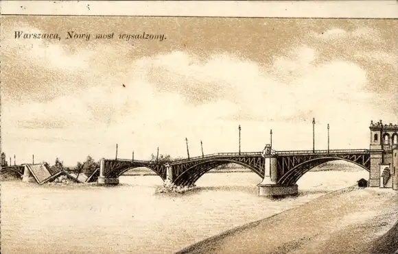 Ak Warszawa Warschau Polen, gesprengte neue Brücke