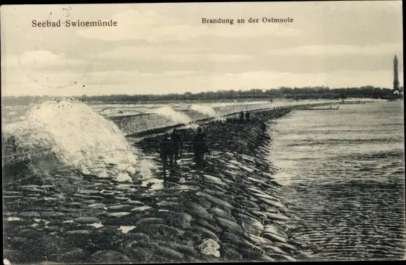 Ak Warszów Osternothafen Świnoujście Swinemünde Pommern, Brandung, Ostmole