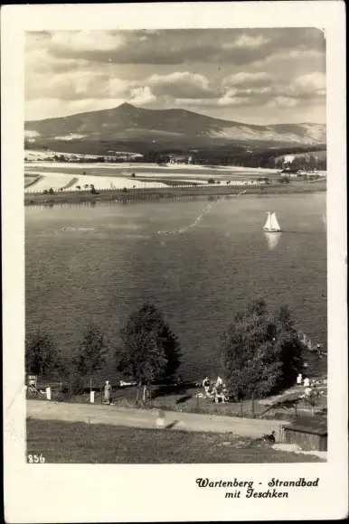 Ak Wartenberg Region Reichenberg, Strandbad mit Jeschken