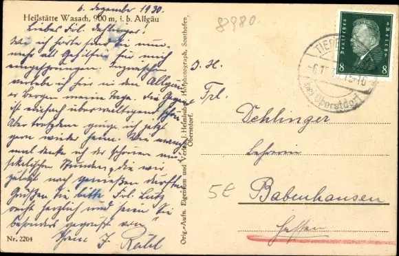 Ak Wasach Oberstdorf im Oberallgäu, Heilstätte