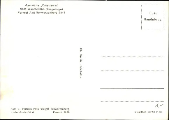Ak Waschleithe Grünhain Beierfeld im Erzgebirge, Gaststätte Osterlamm