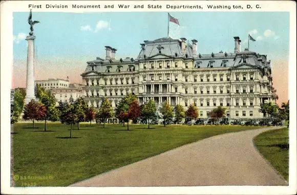 Ak Washington DC USA, First Division Monument, War and State Departements