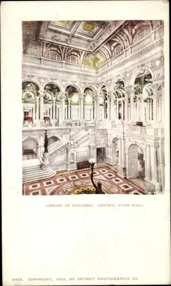 Ak Washington DC USA, Library of Congress, Central Stair Hall