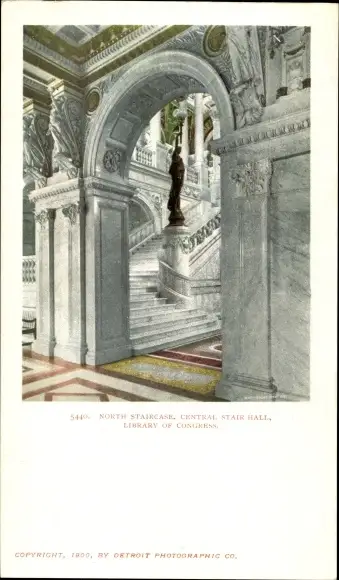 Ak Washington DC USA, Library of Congress, Central Stair Hall, North Staircase