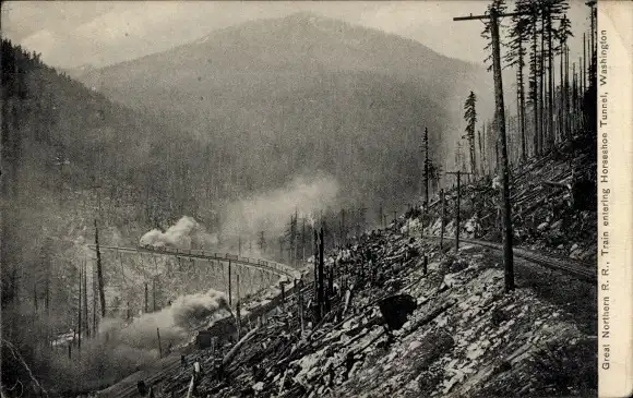 Ak Washington USA, Great Northern R. R. Train entering Horseshoe Tunnel