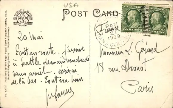 Zustand, siehe Scan, gelaufen, 1909 - ca 14 cm X 9 cm