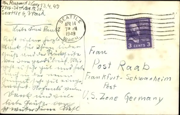 Zustand, siehe Scan, gelaufen, 1949 - ca 14 cm X 9 cm