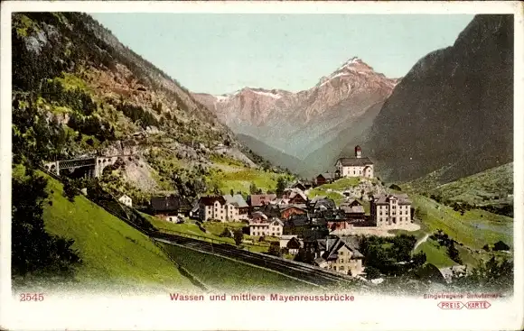 Ak Wassen Kt Uri Schweiz, Gesamtansicht, Mittlere Mayenreussbrücke