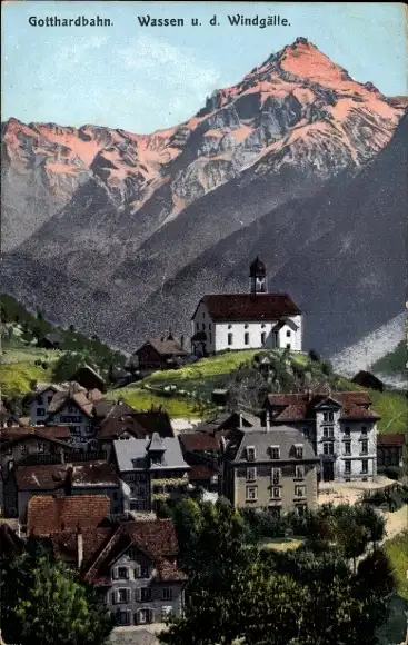 Ak Wassen Kt Uri Schweiz, Windgälle, Gotthardbahn