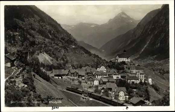 Ak Wassen Kt Uri Schweiz, mit Windgälle, Gotthardbahn