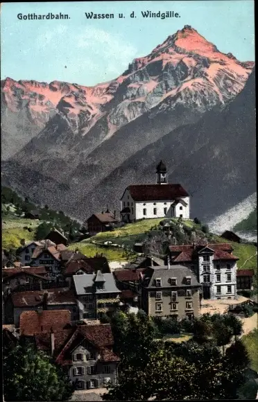 Ak Wassen Kt Uri Schweiz, u. d. Windgälle, Gotthardbahn