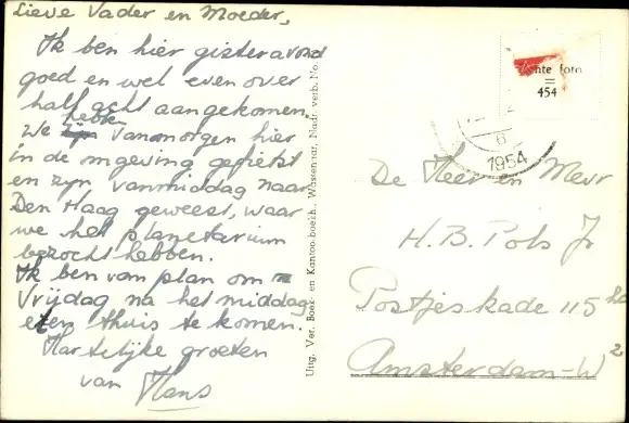 gelaufen 1954, Briefmarke entfernt, sonst guter Zustand