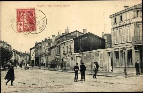 Ak Wassy Marne, Rue General Defrance, Café du Centre