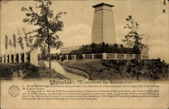 Ak Waterloo Wallonisch-Brabant, Denkmal der Hannoveraner