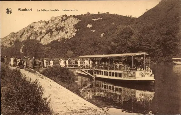 Ak Waulsort Ardennes, Le bateau Touriste, Embarcadere