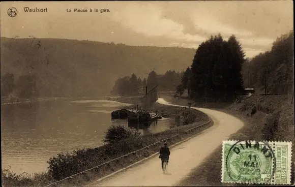 Ak Waulsort Hastière Wallonien Namur, La Meuse am Bahnhof