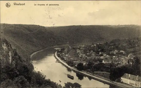 Ak Waulsort Hastière Wallonien Namur, die Flagge, Panorama
