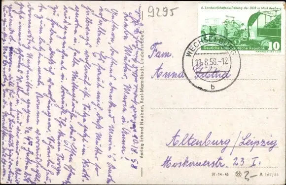 Zustand, siehe Scan, gelaufen, 1958 - ca 14 cm X 9 cm