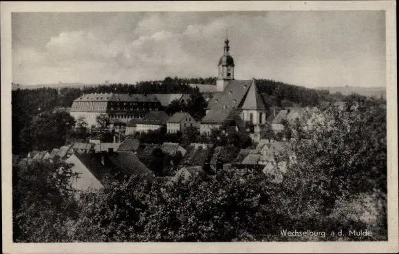 Ak Wechselburg in Sachsen, Teilansicht, Kirche