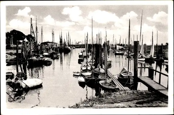 Ak Wedel an der Elbe, Hafen in Schulau, Boote, Steg