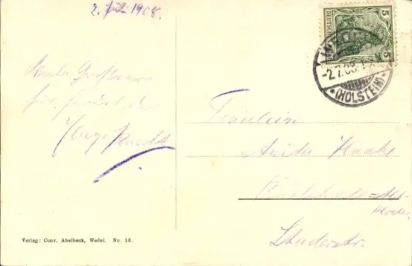 Zustand, siehe Scan, gelaufen, 1908 - ca 9 cm X 14 cm