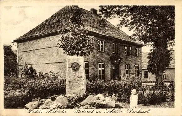 Ak Wedel in Holstein, Pastorat mit Schillerdenkmal