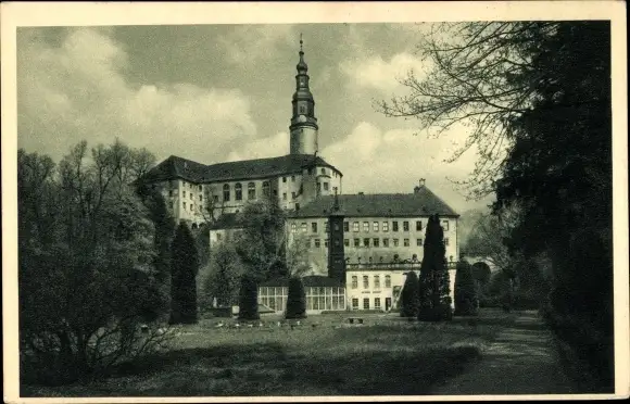 Ak Weesenstein Müglitztal Sachsen, Schloss Weesenstein vom Schlosspark aus