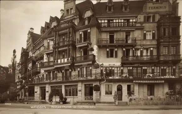 Ak Weggis Kanton Luzern, Hotel, Post, terminus