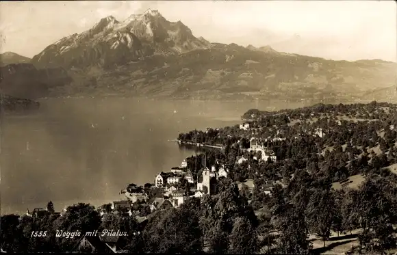 Ak Weggis Kanton Luzern, Panorama mit Pilatus