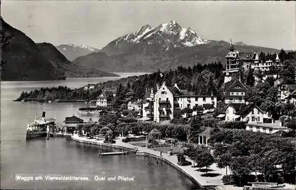 Ak Weggis Kanton Luzern, Quai und Pilatus