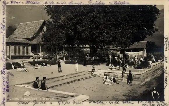 Ansichtskarte, Postkarte, Badeanstalt, Schwimmbad, Freibad, Strandbad, Volksbad
