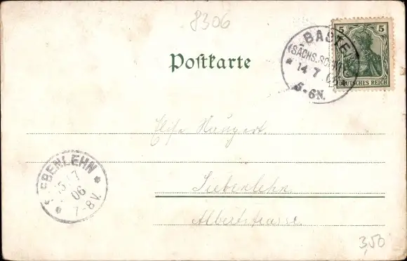 Zustand, siehe Scan, gelaufen, 1906 - ca 14 cm X 9 cm
