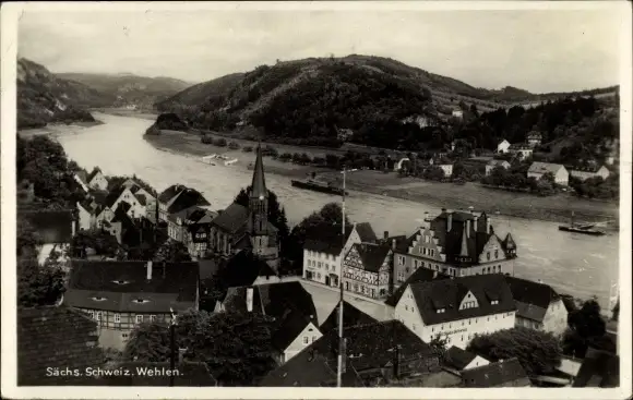 Ak Wehlen an der Elbe Sachsen, Panorama, Kirche, Fluss