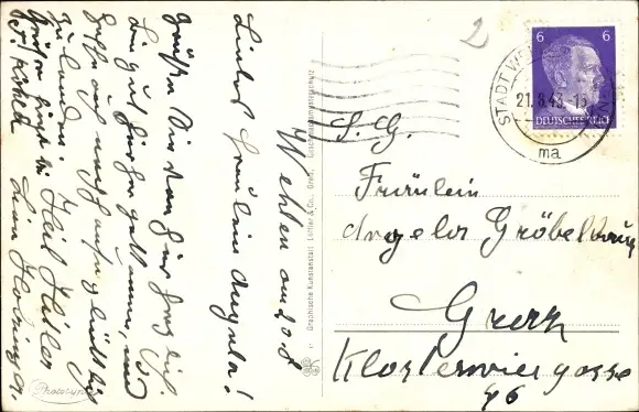 Zustand, siehe Scan, gelaufen, 1943 - ca 14 cm X 9 cm