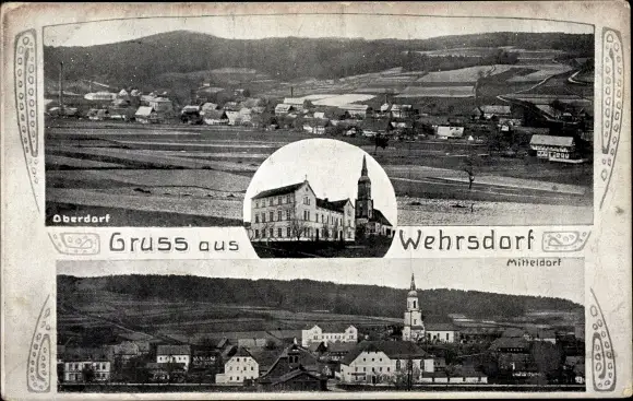 Ak Wehrsdorf Sohland an der Spree, Oberdorf, Mitteldorf, Partie an der Kirche