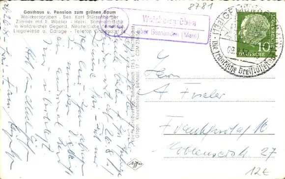 Ak Weickersgrüben Gräfendorf in Unterfranken, Totalansicht, Gasthaus und Pension zum grünen Baum