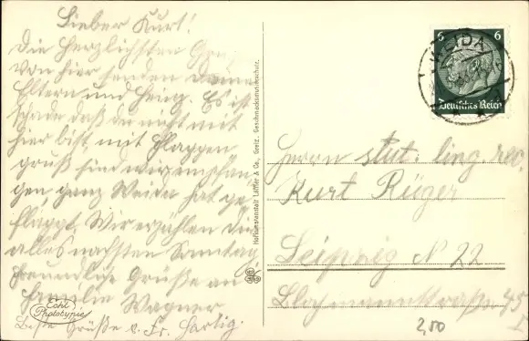 Zustand, siehe Scan, gelaufen, 1933 - ca 14 cm X 9 cm