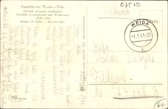 Zustand, siehe Scan, gelaufen, 1941- Bes. H. Zobel - ca 15 cm X 9 cm
