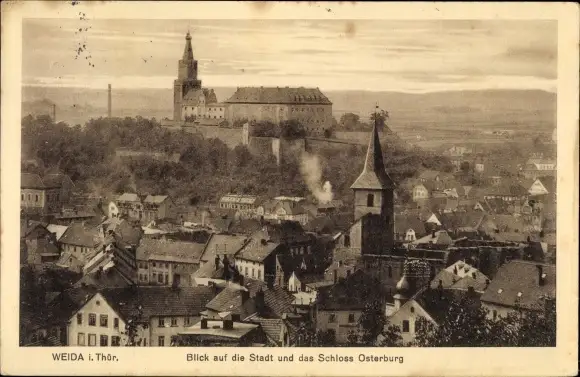 Ak Weida in Thüringen, Blick auf die Stadt und das Schloss Osterburg